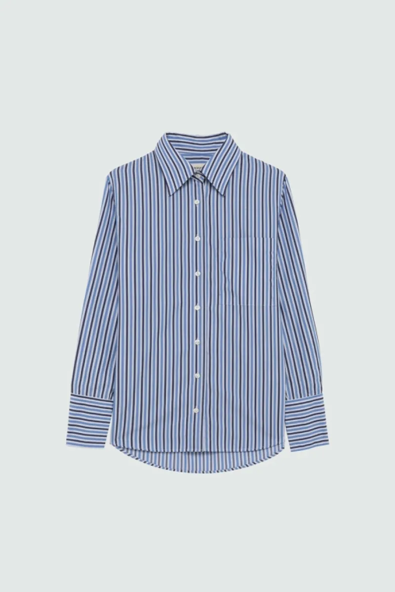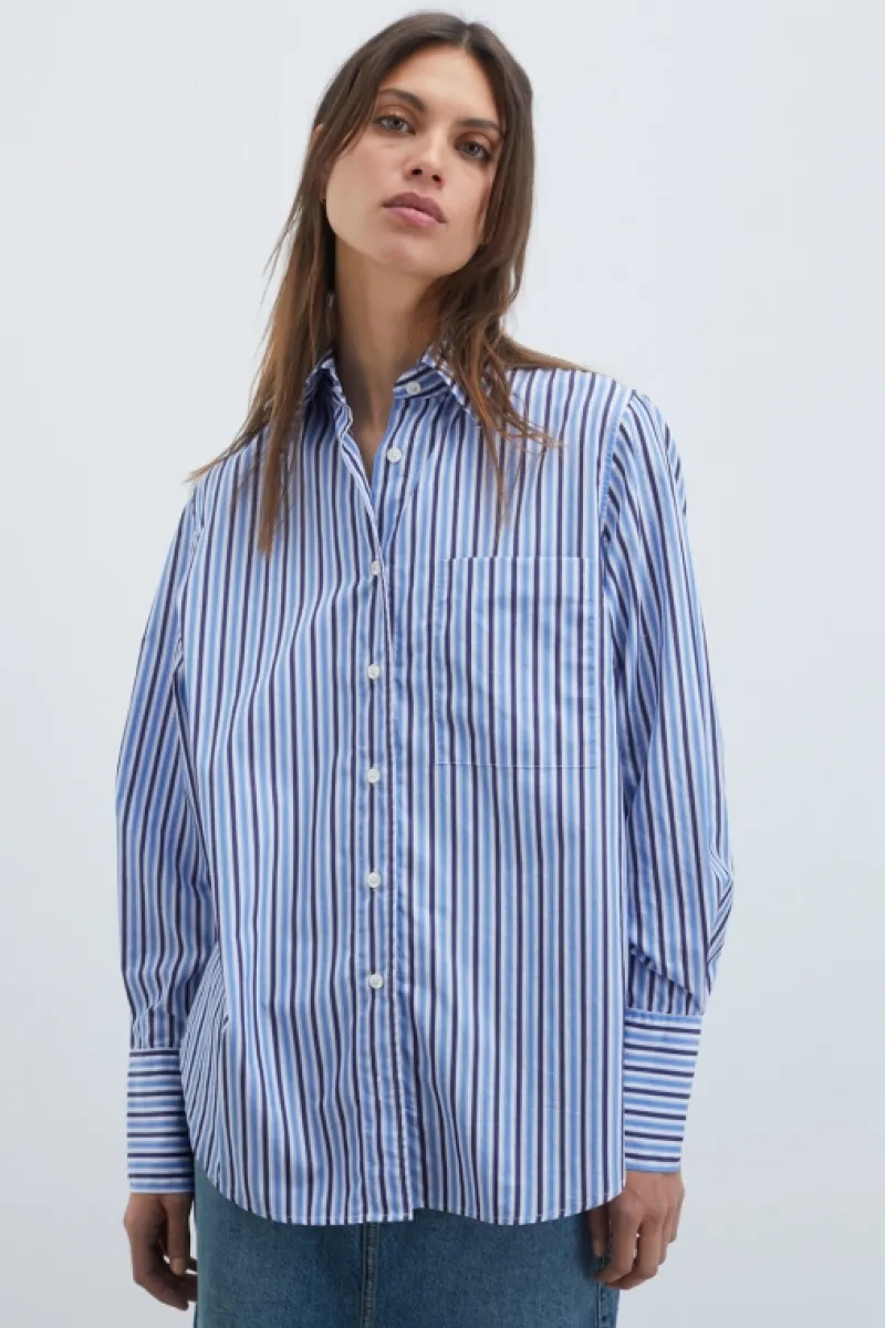 Camicia Mimi in popeline di cotone washed stripe. Colletto classico. Chiusura con bottoni logati. Tasca piatta sul petto…