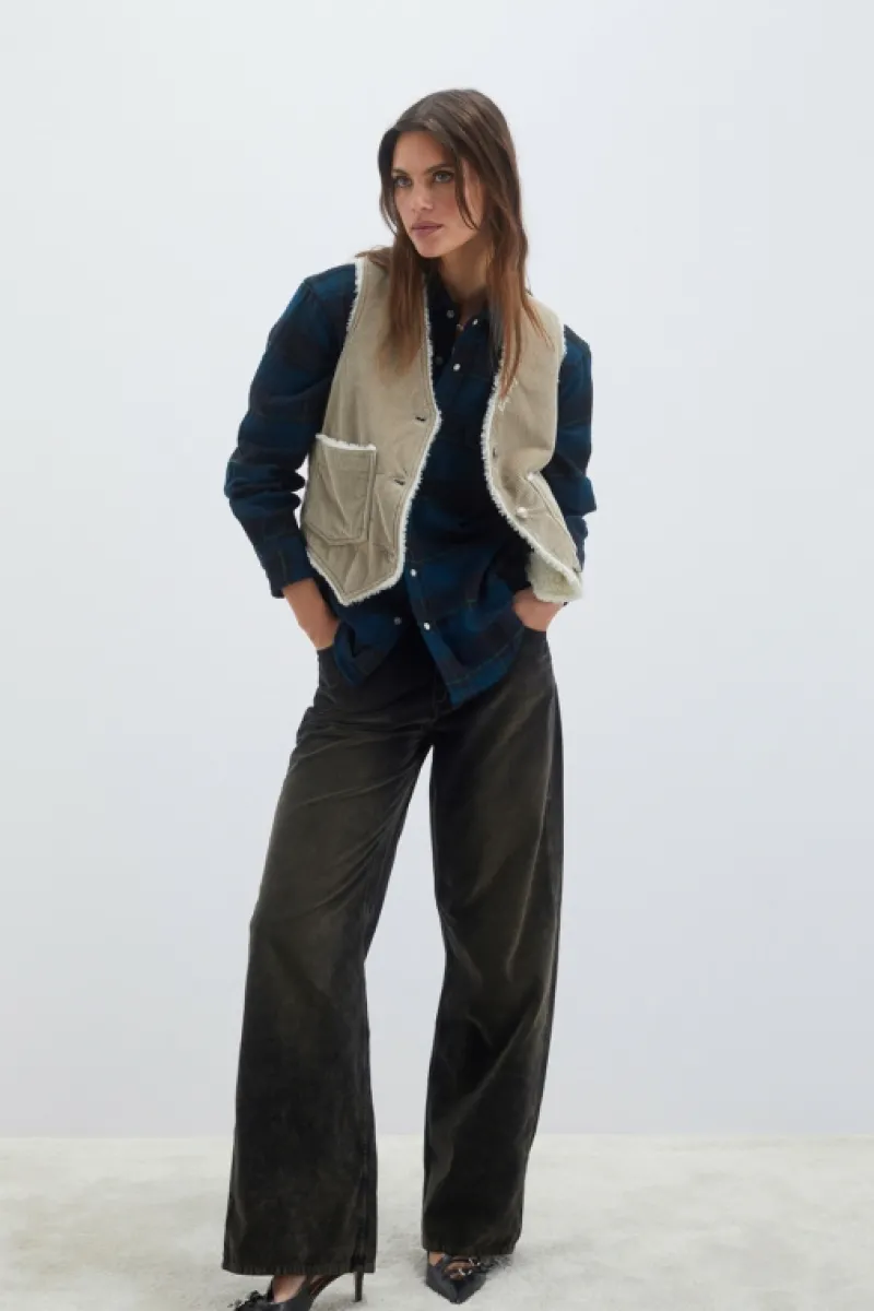 Gilet in velluto a coste tinta unita. Scollo a V. Chiusura con bottoni logati. Tasche piatte sul fronte. Interno in shearling. Regular fit. COMPOSIZIONE: 100% COTONE.