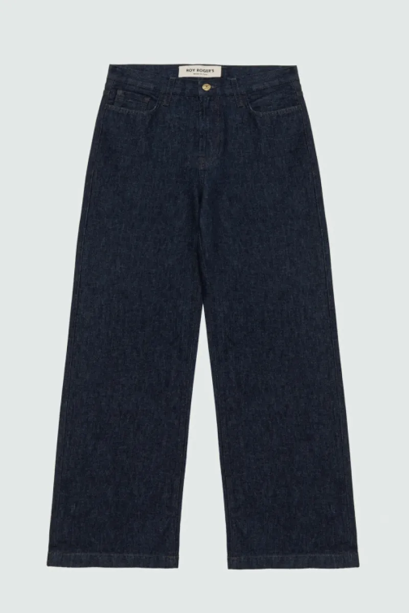 Jeans in denim rinse con lavaggio scuro. Vita media con passanti e salpa applicata sul retro. Chiusura con bottone logato e zip. Due tasche sul fronte e due tasche sul retro con label Roy Roger’s applicata. Flare fit. COMPOSIZIONE: 100% COTONE.
