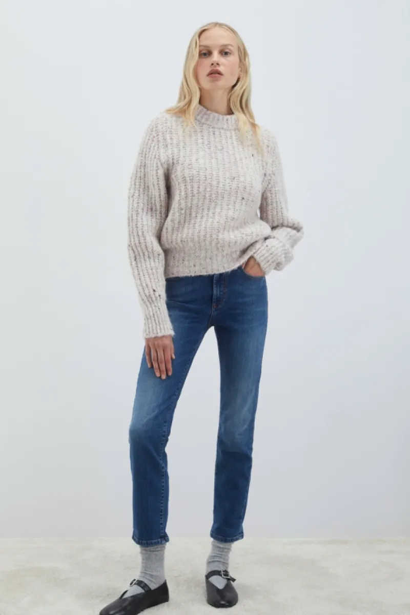 Jeans in denim recycled con lavaggio medio. Vita media con passanti. Chiusura con bottone logato e zip. Due tasche sul f…