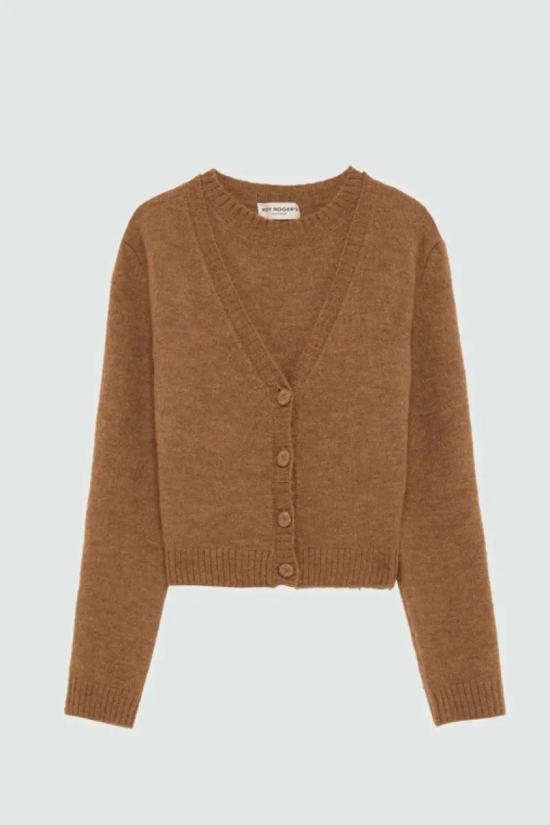 Twin set composto da cardigan e top in misto lana tinta unita. Cardigan con bottoni rivestiti in tono e top girocollo. Label Roy Roger’s applicata sul retro. Profili a coste. Regular cropped fit. COMPOSIZIONE: 57% ACRILICO 29% POLIAMMIDE 7% LANA 7% VISCOSA.