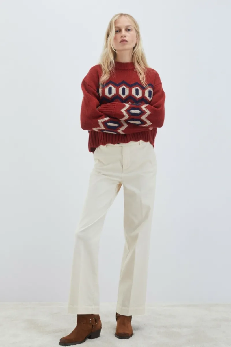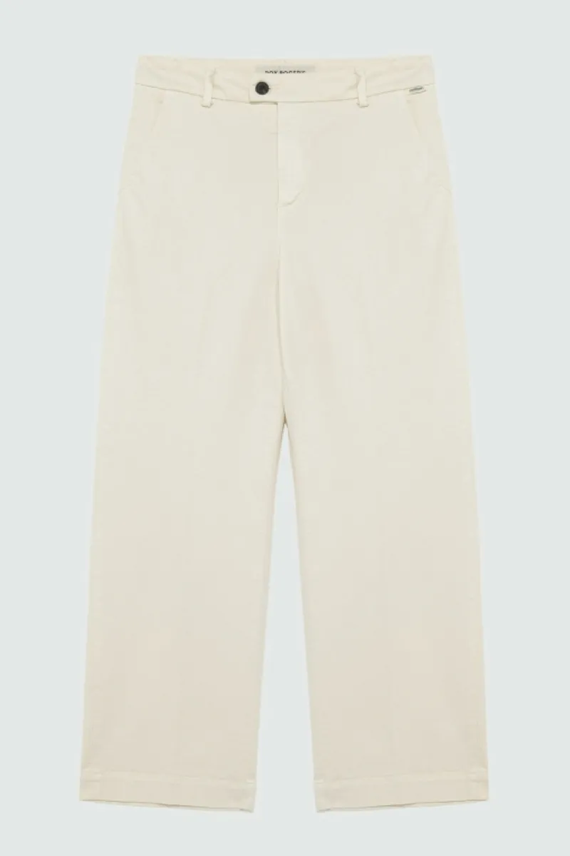 Pantalone Lais in tessuto soft tinta unita. Vita media con passanti. Chiusura con bottone logato asimmetrico e zip. Tasche all’americana sul fronte e tasche a filetto sul retro con bottone logato. Micro label Roy Roger’s applicata in vita di lato. Flare fit. COMPOSIZIONE: 49% COTONE 49% LYOCELL 2% ELASTAN.