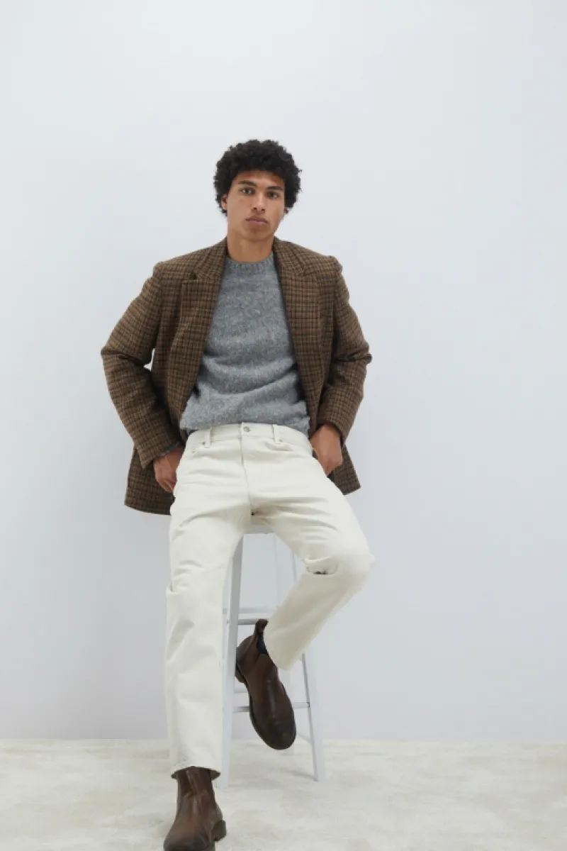Jeans research in denim bull effetto naturale e leggero effetto used. Vita media con passanti e salpa applicata sul retr…