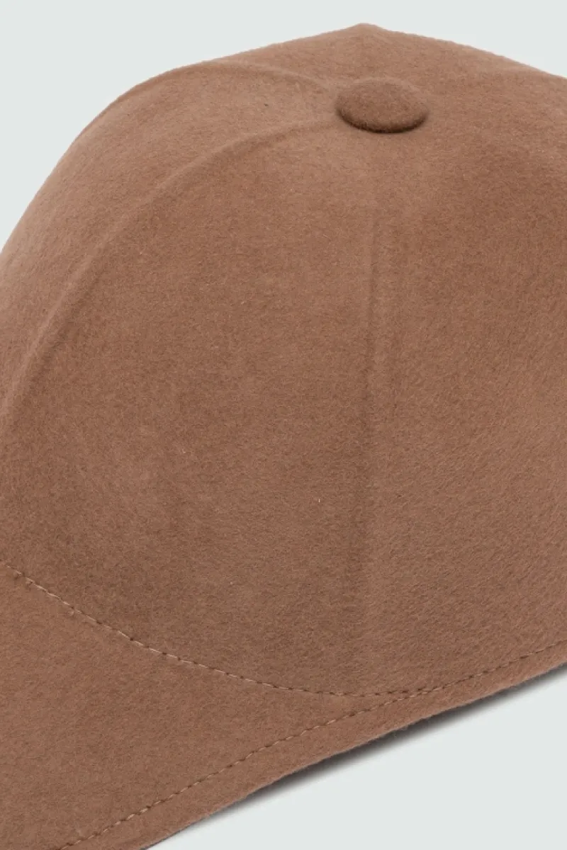 Cappello modello Baseball in feltro tinta unita con impunture in tono. Tesa semi-rigida. Bottone superiore in tono. Labe…