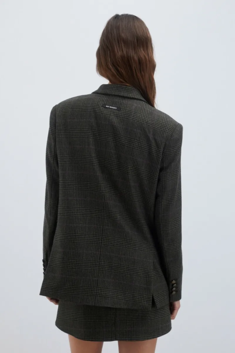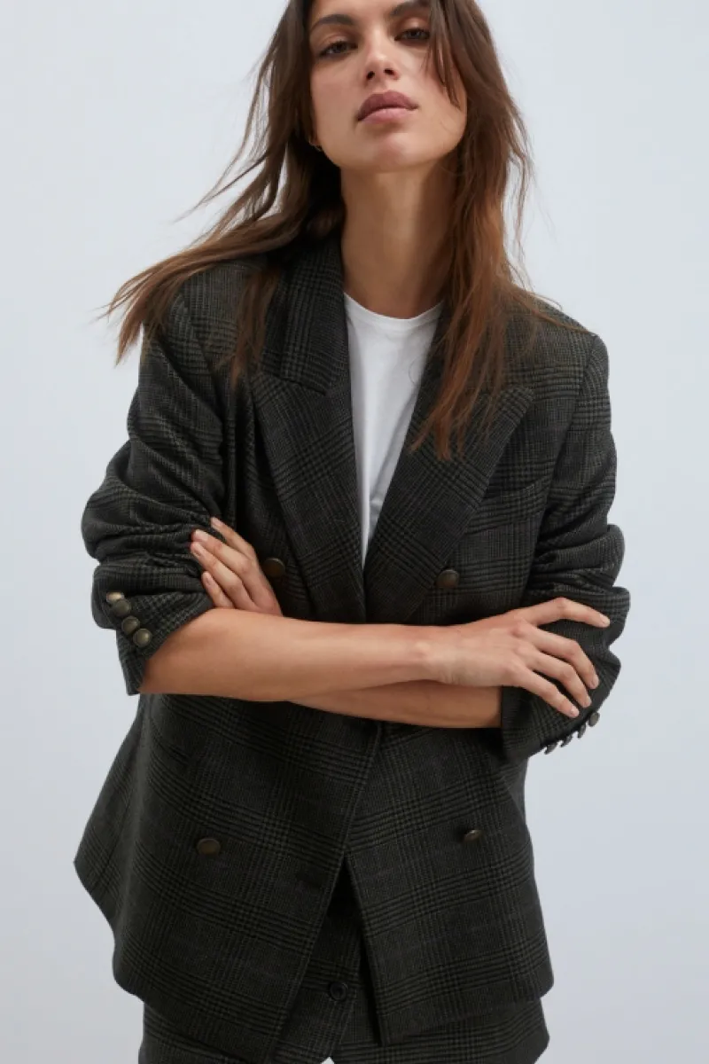 Blazer doppiopetto in misto lana con motivo Galles. Spalle imbottite. Collo reverse. Chiusura con bottoni. Tasche a file…
