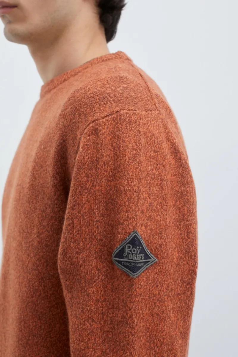 Maglia girocollo in lana e cashmere tinta unita. Maniche lunghe. Collo, polsini e fondo a costine. Patch Roy Roger’s in denim applicata su una manica. Regular fit. COMPOSIZIONE: 45% LANA 25% VISCOSA 25% NYLON 5% CASHMERE.